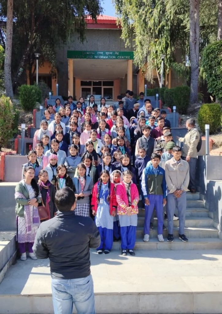 कुल 205 छात्रों ने – जिनमें से 85 पीएम श्री जीआईसी अमस्यारी, बागेश्वर और 120 पीएम श्री केंद्रीय विद्यालय, अल्मोड़ा के थे – एक एजुकेशनल एक्सपोज़र टूर के तहत संस्थान का दौरा किया। इस दौरे के दौरान, छात्रों को संस्थान के काम, प्रमुख रिसर्च पहलों और हिमालयी पर्यावरण और उसके प्राकृतिक संसाधनों के संरक्षण से संबंधित मुख्य उपलब्धियों के बारे में बताया गया। उन्होंने अलग-अलग लैब्स, ऑटोमैटिक वेदर स्टेशन और सूर्यकुंज का दौरा किया, जहाँ उन्हें चल रहे वैज्ञानिक रिसर्च और फील्ड-बेस्ड इनोवेशन को सीधे देखने का मौका मिला। इस दौरे ने छात्रों को वैज्ञानिक सोच विकसित करने के लिए प्रेरित किया और उन्हें जलवायु परिवर्तन से लड़ने में योगदान देने के लिए अपने रोज़मर्रा के जीवन में टिकाऊ और पर्यावरण के अनुकूल तरीकों को अपनाने के लिए प्रोत्साहित किया।