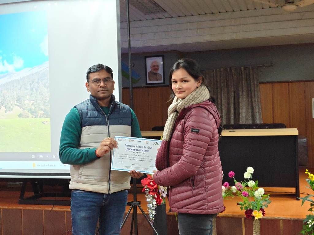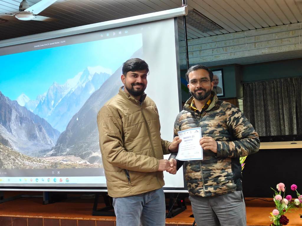 International Mountain Day 2025, commemorated on 11 December, draws attention to the indispensable role that mountains play in safeguarding ecological balance and human prosperity. This year’s theme, ‘Glaciers Matter for Water, Food and Livelihoods in Mountains and Beyond,’ highlights glaciers as vital freshwater reserves for nearly two billion people, particularly Indigenous communities that depend on them for agriculture, hydropower, and cultural traditions. To mark the occasion, the Institute celebrated International Mountain Day 2025 by hosting a special lecture by Dr. Lavkush Kumar Patel, who is currently serving as a Scientist ‘D’ at the Centre for Cryosphere and Climate Change Studies (C4S), National Institute of Hydrology (NIH), Roorkee, titled ‘Understanding Glacier Dynamics: From Ice Flow to Climate Change.’ Prizes for the Photography Contest were also distributed among researchers and scientists.