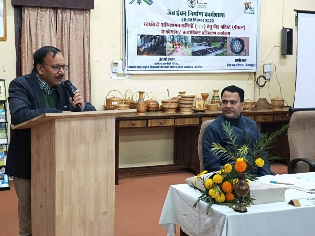 A two-day Training of Trainers (ToT) on bio-briquetting using pine needles was held from 29–30 December 2025 at the Rural Technology Complex of the G.B. Pant National Institute of Himalayan Environment, Almora, in collaboration with The Hans Foundation. Forty volunteer firefighters from the Almora and Bageshwar districts participated in the programme, which focused on converting pine litter into bio-briquettes to reduce forest fire risk while creating livelihood opportunities. The training included technical and hands-on sessions on bio-briquette production, value addition, and entrepreneurship, and concluded with the distribution of certificates to participants.