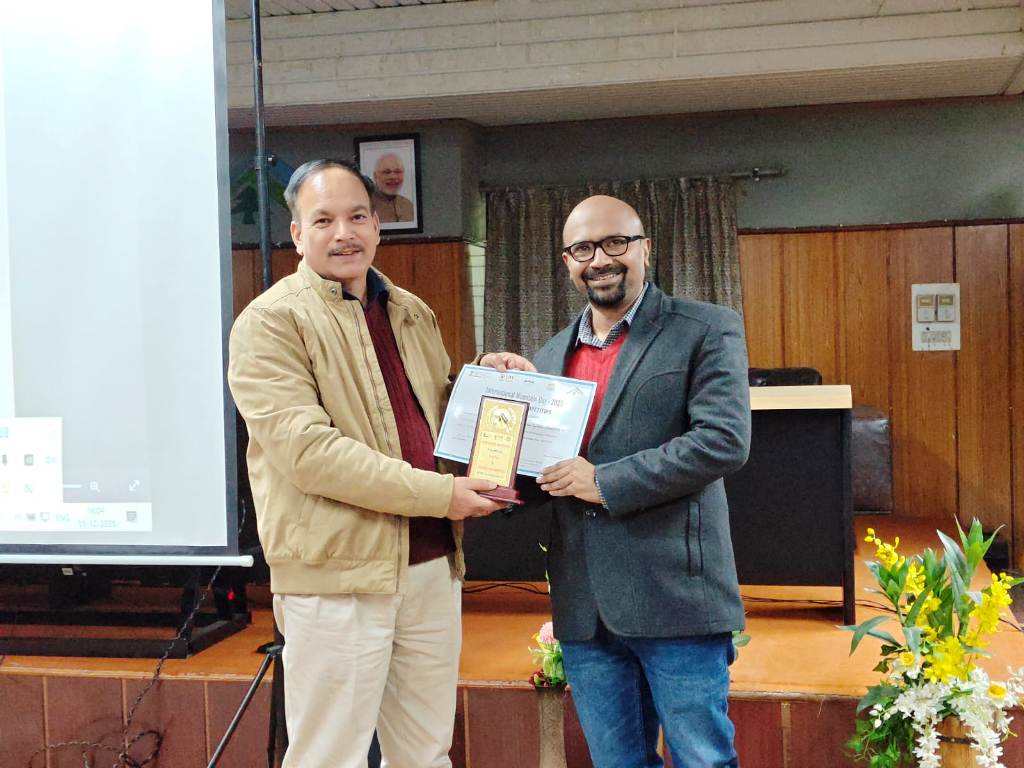 11 दिसंबर को मनाए जाने वाले अंतर्राष्ट्रीय पर्वत दिवस 2025 का मकसद पहाड़ों द्वारा पारिस्थितिक संतुलन और मानव समृद्धि की रक्षा में निभाई जाने वाली अहम भूमिका की ओर ध्यान दिलाना है। इस साल की थीम, 'पहाड़ों और उससे आगे पानी, भोजन और आजीविका के लिए ग्लेशियर मायने रखते हैं,' ग्लेशियरों को लगभग दो अरब लोगों के लिए ताज़े पानी के महत्वपूर्ण भंडार के रूप में उजागर करती है, खासकर स्वदेशी समुदायों के लिए जो खेती, पनबिजली और सांस्कृतिक परंपराओं के लिए उन पर निर्भर हैं। इस अवसर पर, संस्थान ने डॉ. लवकुश कुमार पटेल द्वारा एक विशेष व्याख्यान आयोजित करके अंतर्राष्ट्रीय पर्वत दिवस 2025 मनाया, जो वर्तमान में सेंटर फॉर क्रायोस्फीयर एंड क्लाइमेट चेंज स्टडीज़ (C4S), नेशनल इंस्टीट्यूट ऑफ हाइड्रोलॉजी (NIH), रुड़की में वैज्ञानिक 'D' के रूप में कार्यरत हैं, जिसका शीर्षक था 'ग्लेशियर डायनामिक्स को समझना: बर्फ के प्रवाह से जलवायु परिवर्तन तक।' फोटोग्राफी प्रतियोगिता के पुरस्कार भी शोधकर्ताओं और वैज्ञानिकों के बीच वितरित किए गए।